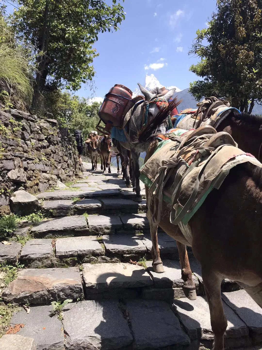 路上碰到的马队,山上的物资全是人力畜力驮上去的